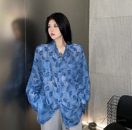 長袖シャツ バイカラー 切り替え 体型カバー 着痩せ シンプル