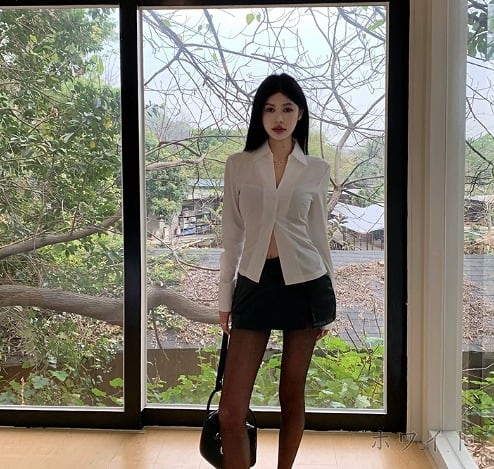 全2色 長袖シャツ 切り替え スリム 着痩せ レース sweet系