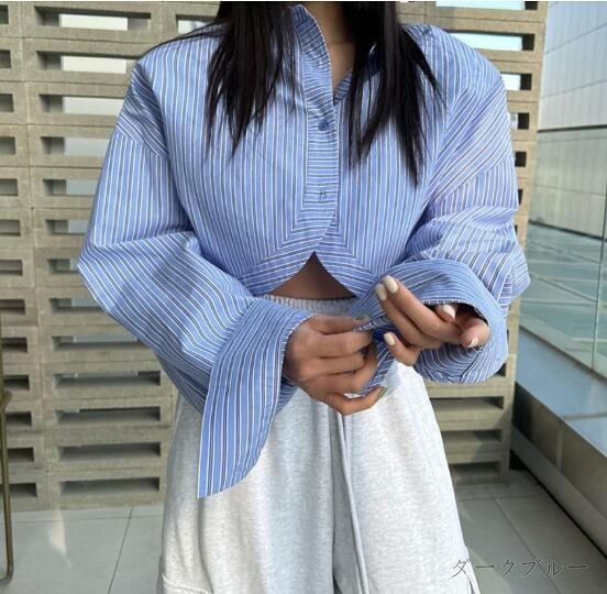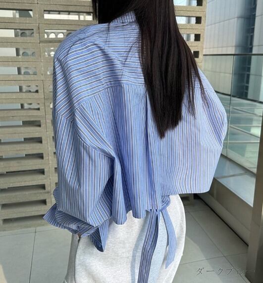 全2色 長袖シャツ ショット丈 切り替え バイカラー 体型カバー 着痩せ シンプル
