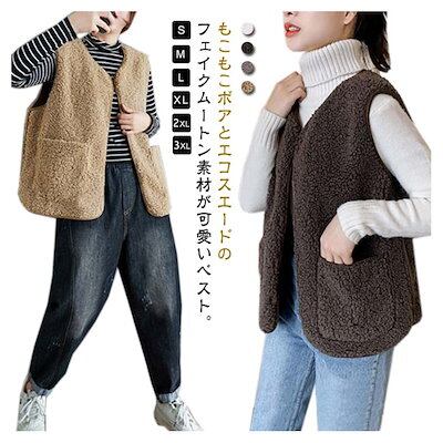 【輸送費無料】一瞬で引き締まる!ボアベスト レディース 春 秋冬 インナーベスト もこもこ ふわふわ ボアジャケット ノーカラー ノースリーブ ショート丈 冬 秋 アウター 羽織り 秋物 秋服 ボア