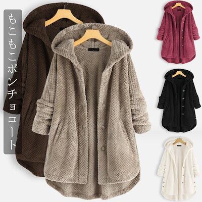 【GUANGYU】新品登場もこもこアウターポンチョコートボアコートフード付きレディースボアジャケットふわふわカーディガンゆったり秋冬あったか部屋着無地