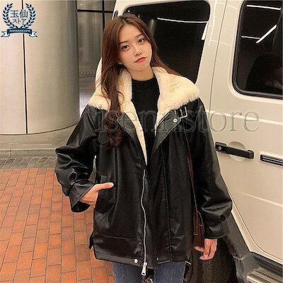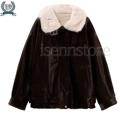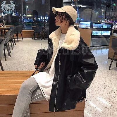 フェイクレザー ジャケット PU革 ライダース ボアジャケット アウター 裏ボア レディース 秋 冬 ブルゾン もこもこ バイクウエア 革ジャン