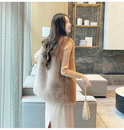 ベスト レディース ファーベスト オーバーサイズ ゆったりめ フェイクファー ミドル丈 ジャケット アウター エコファー羽織り 秋冬 ふわふわ もこもこ 大人リッチ アウター コート おしゃれ ベージ