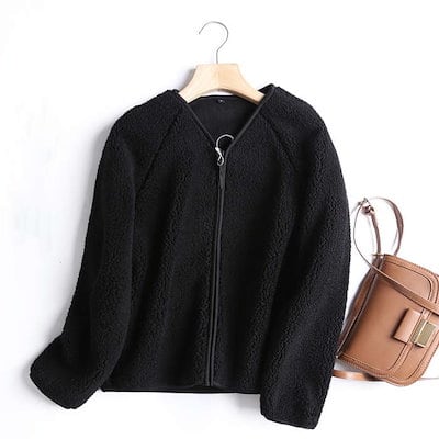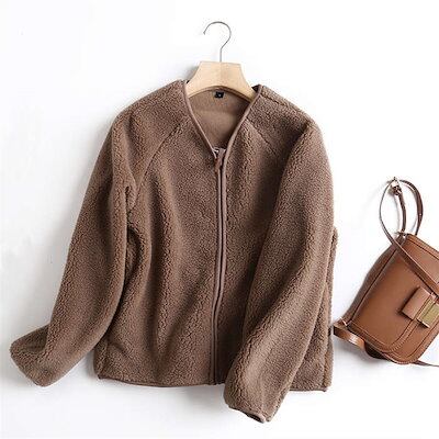 ボア ブルゾン レディース ボアジャケット Vネック アウター 秋 冬 無地 長袖 ノーカラー ファスナー ボアコート 羽織り 防寒 厚手 暖かい 大きいサイズ ジャケット もこもこ 体型カバー カジ