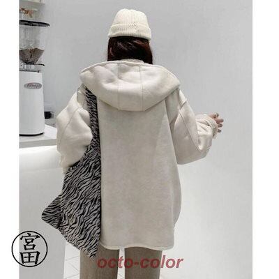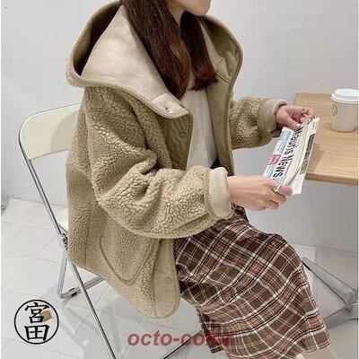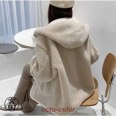 冬の暖かさ!ボアコート レディース ムートンコート 冬 秋 ブルゾン ボア もこもこ ファーコート フード付き 防寒 ゆったり ボリューム袖 秋冬 フェイクムートン