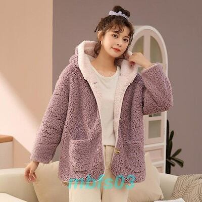 ルームウェア レディース 上着 フード付き アウター ジャケット モコモコ 長袖 フランネル 寝巻き もこもこ あったか 暖かい 部屋着