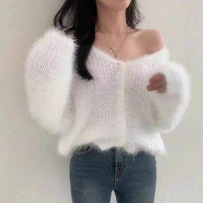 シャギーニットカーディガン レディース ニット カーディガン vネック 長袖 もこもこ カーデ ふわふわ セーター 春秋 ゆったり 前開き アウター フェザートップス 羽織り 暖か 可愛い キレイめ