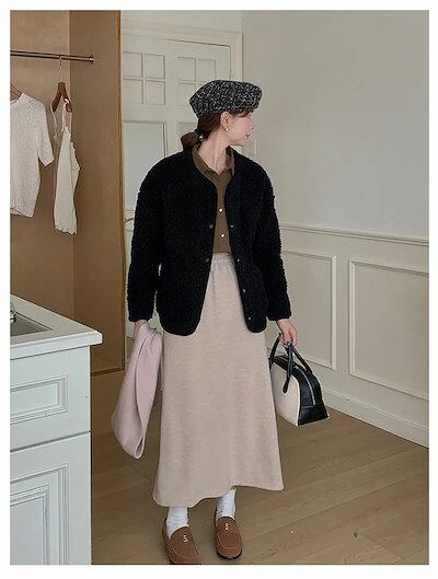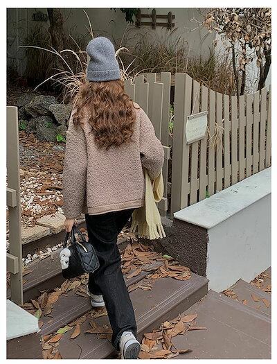 ブルゾン レディース ボアブルゾン ジャンバー ボアアウター ボア ジャケット ノーカラー 無地 ポケット付き ボアコート トップス もこもこ 暖か 体型カバー あったか カジュアル きれいめ 防寒