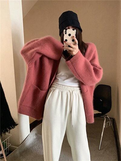 ニットカーディガン レディース 春秋 ニット アウター 大きいサイズ ゆったり 前開き カーディガン トップス ゆるカーデ 羽織 もこもこ 暖か 厚手 ふわふわ キレイめ ゆったり カジュアル