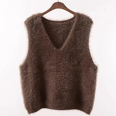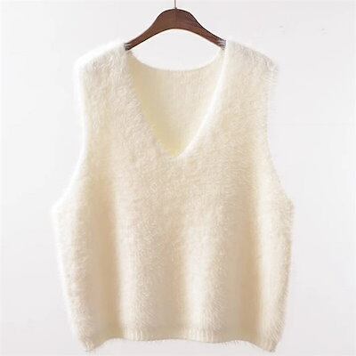ファーベスト vネックベスト レディース 秋 冬 プルオーバー ベスト トップス ふわふわ ショート丈 ノースリーブ 無地 シンプル レイヤード 重ね着 もこもこ 大きいサイズ カジュアル 大人可愛い