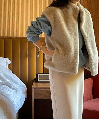 ファーベスト ショート丈 レディース ファーベスト ショート フェイクファー ベスト 秋 冬 ファージレ アウター ファー ベスト ふわふわ もこもこ レイヤード フェイクファー ゆったり 体型カバー