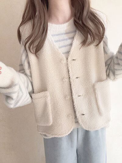 ボアベスト レディース ボア フリース ベスト vネック 前開き もこもこ ファーベスト 秋冬 アウター ポケット付き 無地 カジュアル お洒落 トップス ノースリーブ 羽織り 暖かい 防寒 大人 お