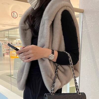 ファーベスト フード付き レディース ファーベスト ショート フェイクファー ベスト 秋 冬 ファージレ アウター ファー ベスト ふわふわ もこもこ レイヤード フェイクファー ゆったり 体型カバー