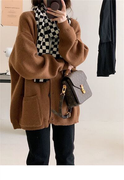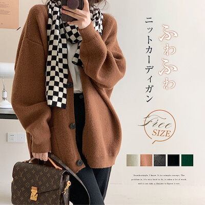 ニットカーディガン レディース 冬 秋 ニット カーディガン vネック 厚手 ゆったり ボリューム袖 アウター トップス ニットカーディガン 羽織 前開き もこもこ 暖か 厚手 ふわふわ キレイめ