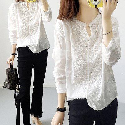 レースブラウス ブラウス レディース 花柄ブラウス 刺繍 小花柄 レース 白シャツ シースルー トップス 刺繍 ホワイト 透け感 薄手 長袖 大人可愛い カジュアル