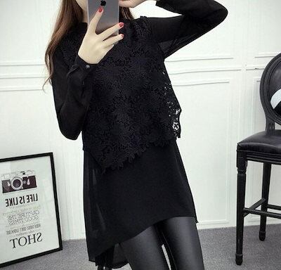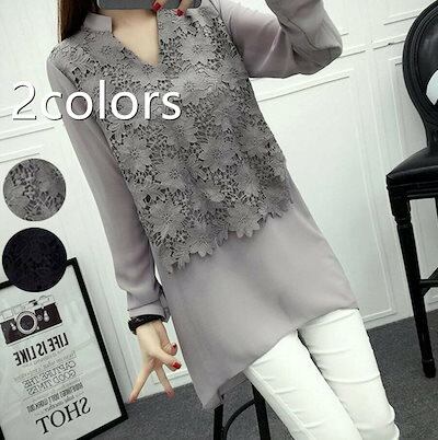 シャツブラウスレディーストップスロングシャツレースチュニック風長袖白大きいサイズゆったりきれいめおしゃれ秋おしゃれオフィスOL通勤フォーマル体型カバーカジュアル韓国