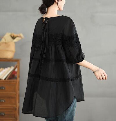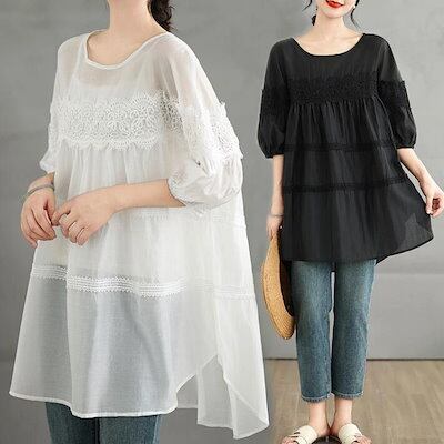 ブラウス レディース レース 花柄 刺繍 半袖 5分袖 大きめ バルーンスリーブ カジュアル きれいめ 春夏 可愛い
