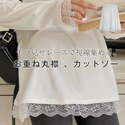 レース カットソー レースインナー トップス レイヤード レディース ロンT 長袖 Tシャツ プルオーバー チュニック インナー 無地 クルーネック 体型カバー 大きいサイズ ゆったり 肌着 重ね着