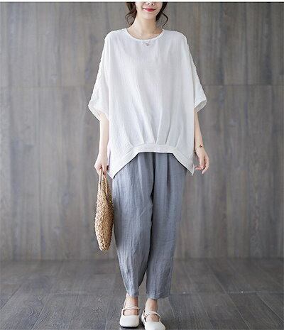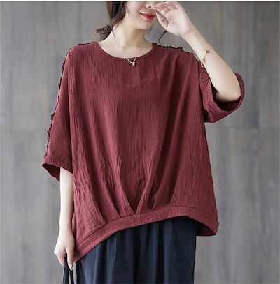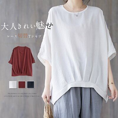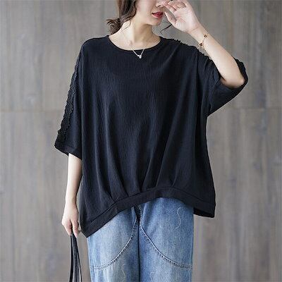 Tシャツ レディース 半袖 ブラウス トップス 夏 ドルマン Tシャツ 半袖シャツ シャツ ブラウス 花柄 レース 切替 半袖tシャツ 黒 白 大きいサイズ かわいい 裾タック ギャザー 無地 ゆった