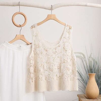 ベスト レディース 春夏 レース サマーニット 透かし編み 花柄 ノースリーブ ショート丈 トップス プルオーバー ニットベスト Uネック 薄手 レースベスト 花柄レース タンクトップ レイヤード 重