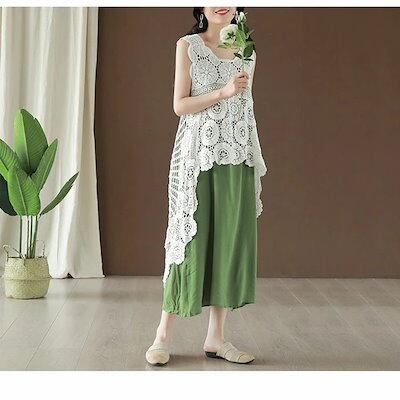 ベスト レディース 春夏 おしゃれ レース サマーニット プルオーバー 透かし編み ノースリーブ ニットベスト Vネック レイヤード 重ね着 トップス 袖なし 無地 きれいめ カジュアル レイ