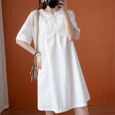 ブラウス レディース 夏 半袖 チュニック ワンピース レース 透け感 ワンピース レース 大きサイズ ロングブラウス ロング トップス フレア フレアワンピース カジュアル おしゃれ 涼しい ゆった
