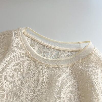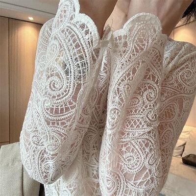 レース tシャツ レディース カットソー トップス ブラウス 長袖 レースシャツ 総レース 花柄 レースtシャツ スーツ インナー クルーネック 秋 春 夏 透け感 セクシー おしゃれ 着回し 重ね着