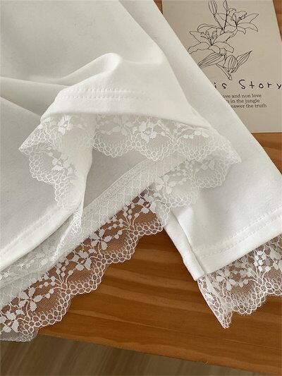 tシャツ レディース おしゃれ 裾&袖口 レース レイヤード 重ね着 カットソー 長袖 花柄レース インナー 無地 Tシャツ シンプル クールネック 着回し 定番 トップス プルオーバー 体型カバー