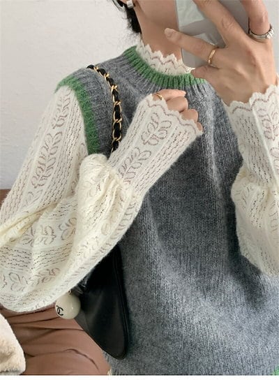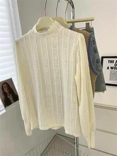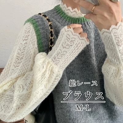 ブラウス ニット レディース 冬 長袖 ニット トップス 総レース ニットソー セーター 重ね着 インナー 長袖ニット トップス レースブラウス ハイネック レーストップス カットソー 長袖tシャツ