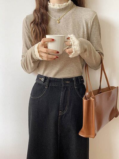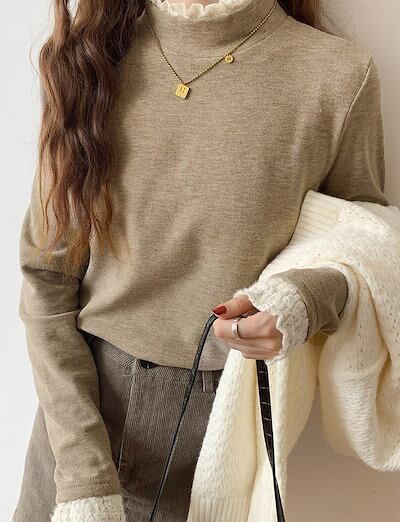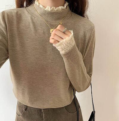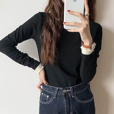トップス レディース 春 秋 ハイネック インナー トップス 切り替え ベーシック 長袖 レース 柔らかい 着痩せ 女性らしい 暖かい 大人 春 秋 長袖 通勤 普段着 カジュアル 日常 着心地