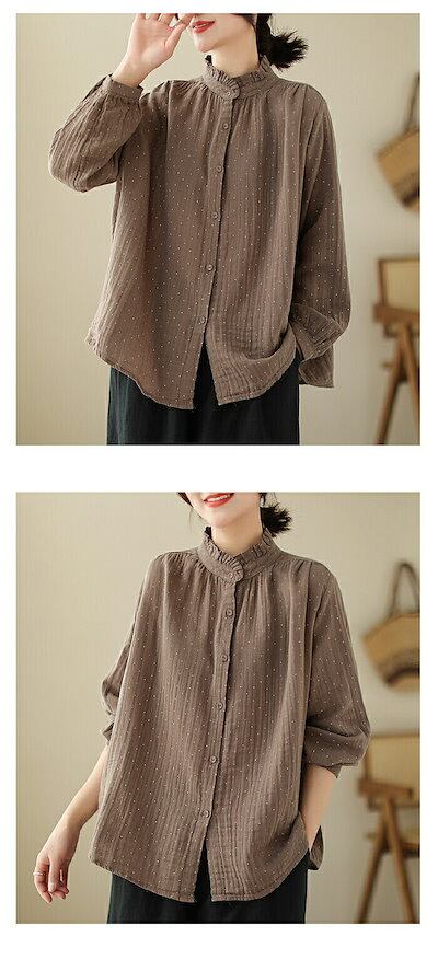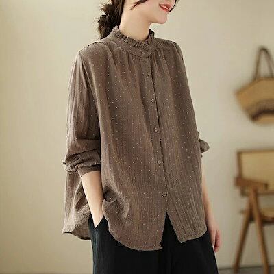 シャツ ブラウス レディース 長袖 トッド柄 シャツ 水玉 シャツブラウス トップス バンドカラー フォーマル ビジネス フリル襟 インナー 水玉柄 大きいサイズ ゆったり カジュアル 柔らかい おし