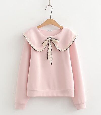 スウェット レディース 秋冬 長袖 可愛い リポン フリル コットン 切り替え ブラウス 異素材 暖かい 大きいサイズ 秋 冬 きれいめ プルオーバー カットソー トップス リラックス シンプル カ