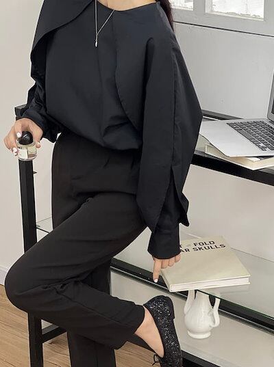 ブラウス 長袖 レディース トップス シャツ フリルブラウス シャツブラウス フリル 切り替え クルーネック 大人可愛い パフスリーブ きれいめ フェミニン 春 秋 シンプル おしゃれ 体型カバー