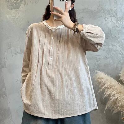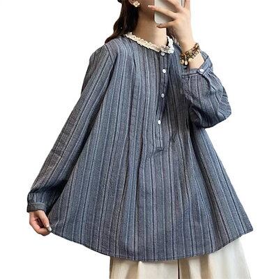 シャツ レディース 長袖 春 秋 シャツ コットン フリル ストライプ 切り替え おしゃれ スウェット プルオーバー シャツブラウス オフィス トップス リラックス ファッション シンプル 綿 重ね着