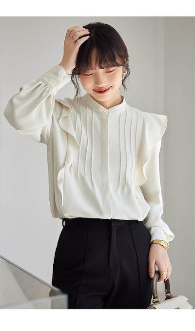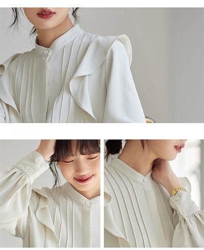シャツ レディース 長袖 春 秋 シャツ フリル バンドカラー 切り替え おしゃれ フォーマル シャツブラウス オフィス トップス リラックス ファッション シンプル 重ね着 春秋 カジュアル オフィ