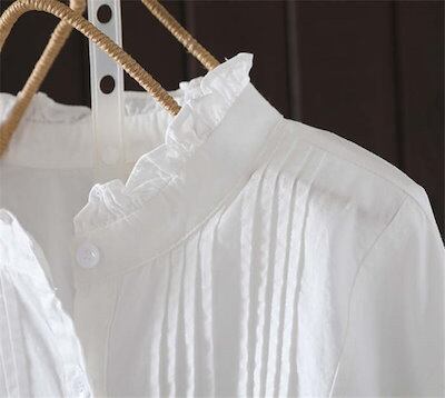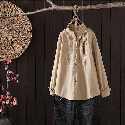 フリル襟 シャツ ブラウス 長袖 立ち襟 ピンタック シャツブラウス レディース トップス 羽織り 春 秋 フォーマル 大人 可愛い ファッション おしゃれ きれいめ ゆったり 重ね着 体型カバー オ