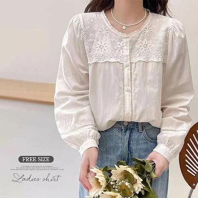 刺繍 シャツ ブラウス レディース 春秋 長袖 フリル襟 可愛い 綿 秋冬 シャツブラウス トップス カジュアル ナチュラル おしゃれ シンプル 通勤 通学 羽織り 春 秋 オフィス お洒落 コット