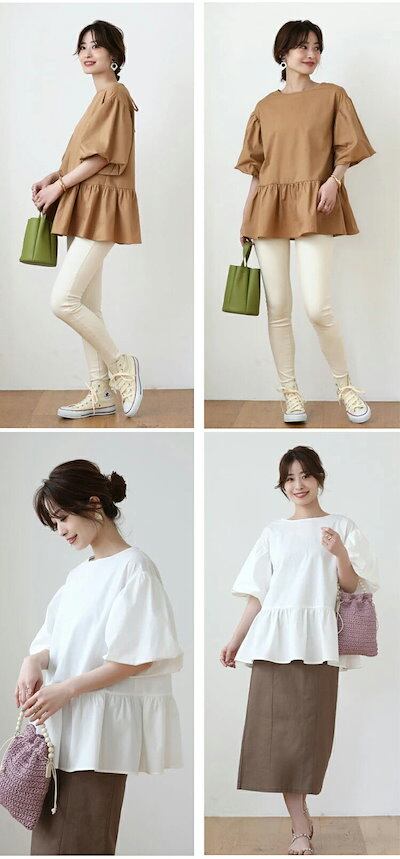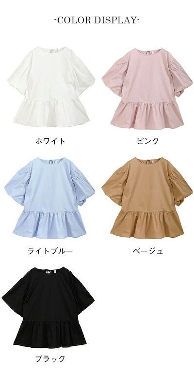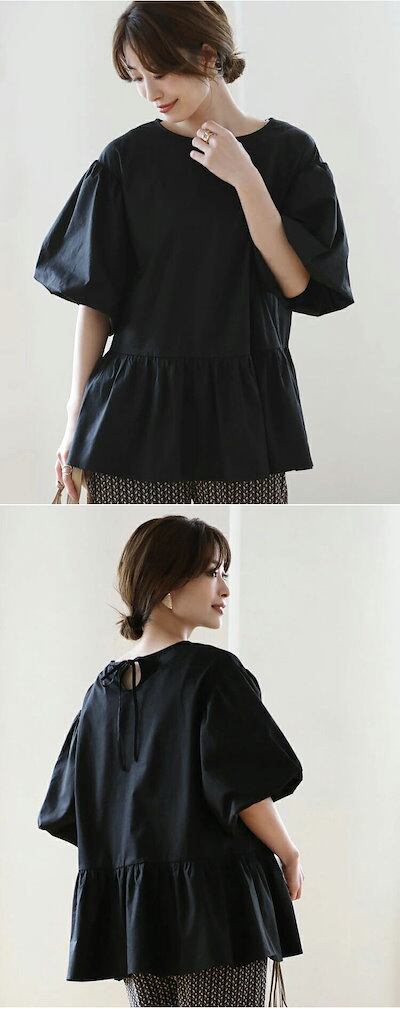 レディース トップス ブラウス 綿混 バルーン袖 ギャザー 五分袖 ドッキング ボリューム袖 フリルシャツ 切り替え 可愛い おしゃれ シンプル ゆったり 体型カバー オフィス カジュアル きれい