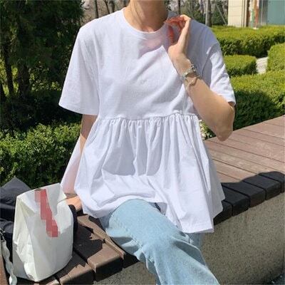 ラッフルスリーブ ブラウス レディース 半袖 トップス フリル付き シャツ きれいめ 仕事 可愛い ストライプ T-シャツ ロングブラウス シャツブラウス チュニック 着痩せ ゆったり 体型カバー ビ