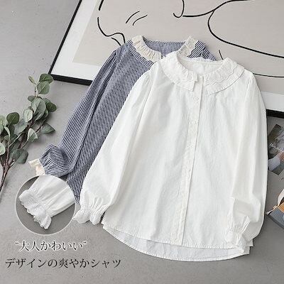 シャツ ブラウス 長袖 トップス 秋 シャツブラウス レディース 白シャツ 長袖シャツ フリル 袖 長袖ブラウス フリルシャツ チェック柄 ギンガムチェック フリルブラウス 入学式 ママスーツ フォー