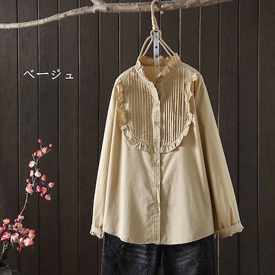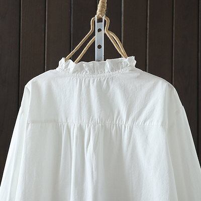 ブラウス レディース フリル 襟 ピンタック シャツ 長袖 シャツブラウス トップス 春 夏 ブラウス フリル襟 立ち襟 白シャツ おしゃれ 長袖シャツ 綿シャツ 綿 コットン 無地 通勤 ビジネス