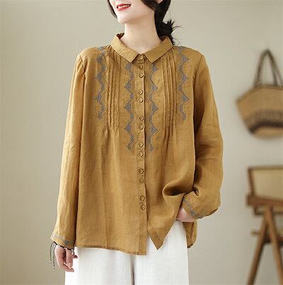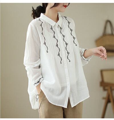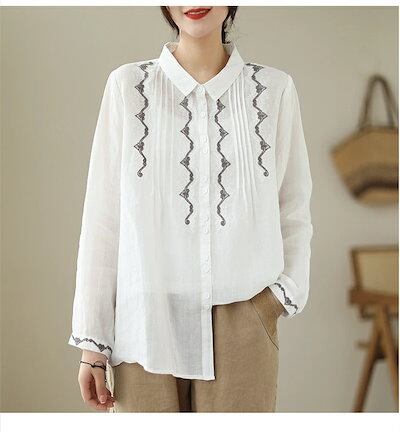 シャツ ブラウス レディース 長袖シャツ シャツブラウス 刺繍シャツ 秋 春 ホワイトシャツ トップス 長袖 白シャツ 刺繍 アウター 前開け 折襟 レイヤード フリル 夏 花柄刺繍 可愛い お洒落
