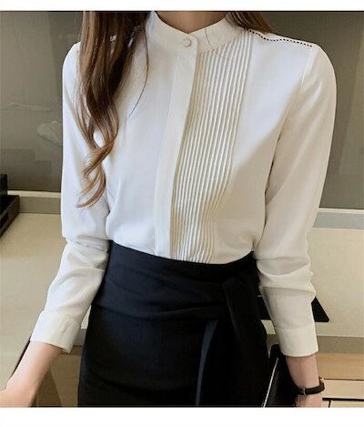 長袖シャツ シャツ レディース 長袖 シャツブラウス ホワイトシャツ 白シャツ ブラウス 秋 フリル シフォンシャツ コットン 無地 綿シャツ 春 無地シャツ 折襟 秋 お洒落 羽織り 前開け 切り替
