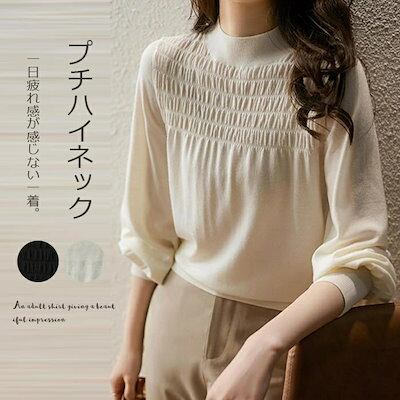 ブラウス セーター トップス レディース 春秋 長袖ブラウス 無地ブラウス ニット ニットソー フリル 長袖 カットソー プチハイネック 薄手 プルオーバー プチハイネック ギャザー エレガント 春秋