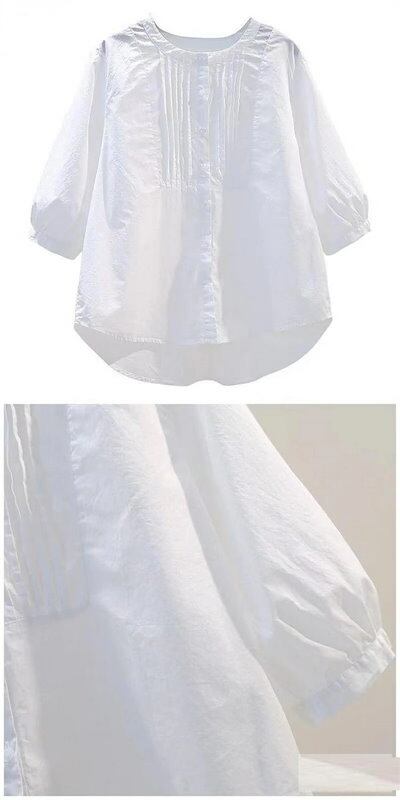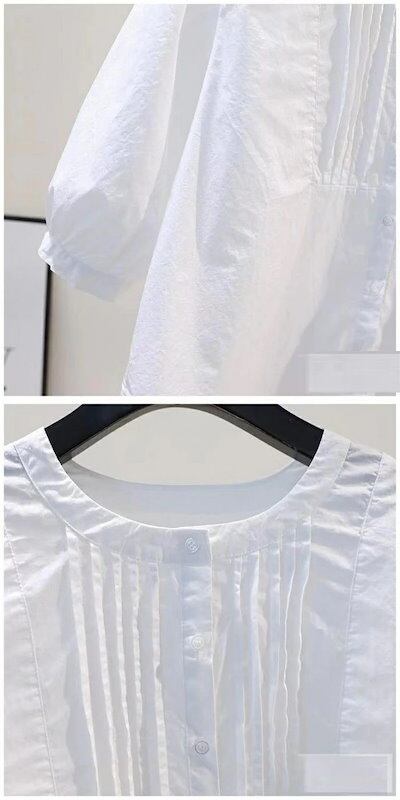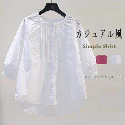 七分袖シャツ バルーンスリーブ シャツ レディース シャツブラウス バルーン袖 ブラウス 7分袖 春夏 ホワイトシャツ シャツノーカラー フリル グルーネック 無地 ラウンドネック 無地シャツ ボリェ