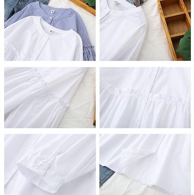 シャツ 7分袖 チュニック 白シャツ レディース 夏 七分袖 シャツブラウス チュニック 薄手 ホワイトシャツ 秋 トップス 羽織り フリル ギャザー ゆったり ドルマンスリーブ 無地 シャツ スト