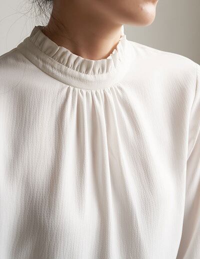 フリル襟 ブラウス レディース スーツブラウス 長袖 レディースブラウス 無地 シャツブラウス ボリューム袖 七五三 ママ スーツインナー 入学式 卒業式 インナー スタンドカラー 立ち襟 大人 お洒