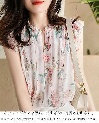 ブラウス ノースリーブ シャツ フリル シャツブラウス レディース 夏 ドッキング ボタン プルオーバー プリント ドット柄 花柄 チェック柄 トップス 大きいサイズ ゆったり 体型カバー 涼しい 薄