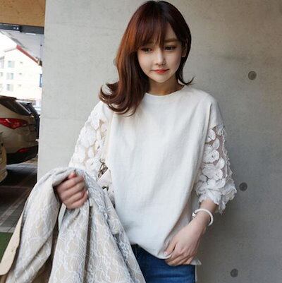 レディースシャツChicスカラップ刺繍シャツパンチングレーストップス透け感あり7分袖フリルルームウェ