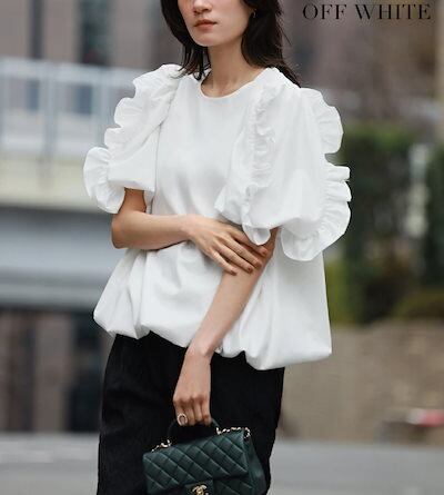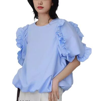 Tシャツ 2025春夏レディース袖口フリルバルーンカットソー